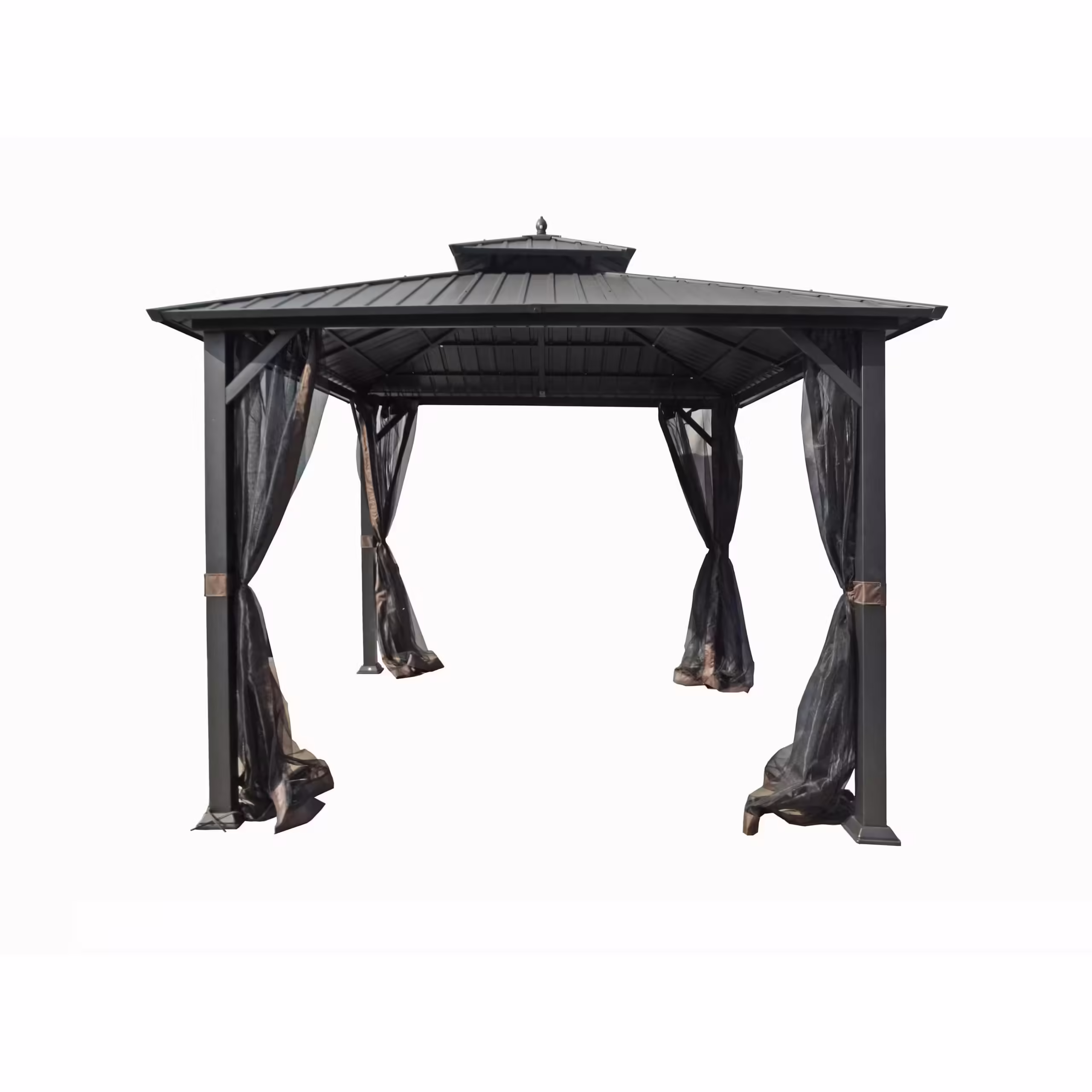 Sunjoy – SummerCove Roberts 13 ft. x 15 ft. Black 2-Tier Hardtop Gazebo