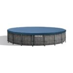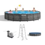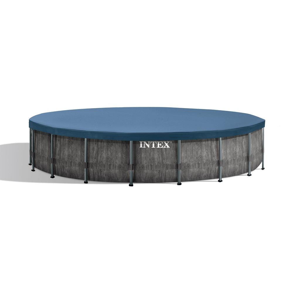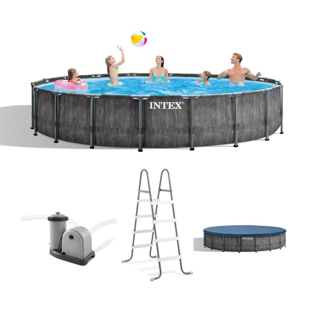 Intex 18 ft. Round 48 in. Deep Hard Side Greywood Prism Steel Frame Pool Set with Cover, Ladder, and Pump