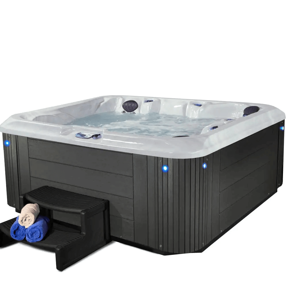 • 85 in. x 85 in. x 36 in. lounger hot tub with enough room for 6 people