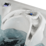 • Lumination lighting system that includes beautiful programmable LED/multi-color interior spa lighting with backlit beverage holders, waterfall, diverter valves, main light and exterior lighting for improved ambience and safety
