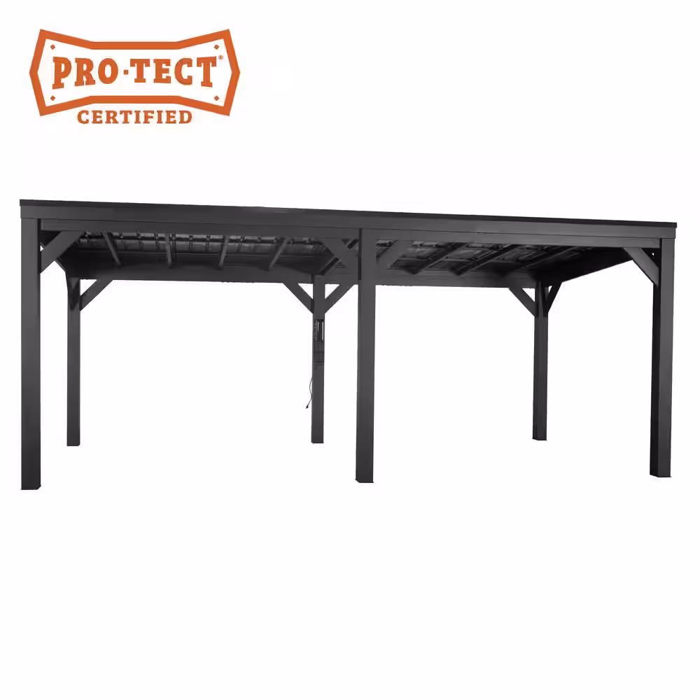 Backyard Discovery – Stonebridge 20 ft. x 9 ft. 6 in. All Steel Metal Carport Pavilion Gazebo with Hard Top Steel Roof