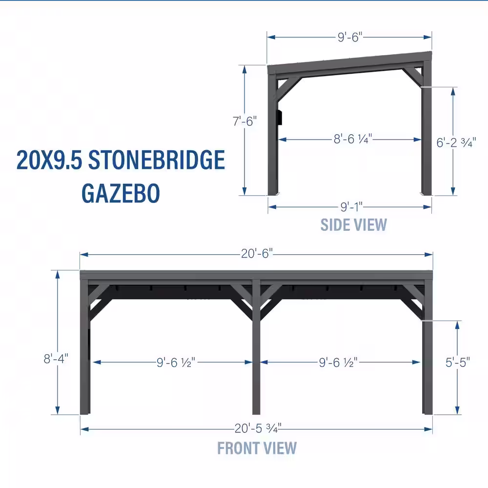 Overall Height from ground to top of canopy/Overall Dimensions in Height (in.) 100.20 in Width (ft) x Depth (ft) 20×10