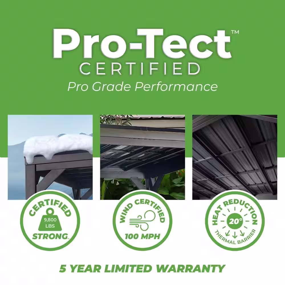 • Pro-tect certified: Pro-Tect structure, certified roof load to withstand up to 9,800 total pounds (up to 30 in. of snow)