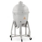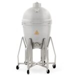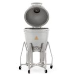 Rated Our Best Kamado Smoker for 2019 – Introducing a tough kamado grill designed to provide a lifetime of performance and memories. Made from one inch thick solid cast aluminum, the Blaze Kamado offers superior durability and outstanding temperature control. The non-porous grill body allows you to use any type of charcoal or wood, as well as any material for lighting the charcoal without worry of damaging or absorbing into the grill body. The heavy-duty 12mm hexagon, 304 stainless steel cooking grate retains heat and helps you achieve an excellent sear. The 20-inch diameter cooking grate is hinged on both sides so you can easily add wood or charcoal without completely removing the cooking surface. A mid-level 18-inch cooking grate is also included which allows you to cook closer to the fire, add a drip pan or a heat deflector for indirect cooking. If you cook food on the middle grate, you will need to use the included high heat gloves to handle the hot cooking grates. The lid hinge is made from 304 grade stainless steel and features a convenient lift assist for easy opening and closing. The Blaze Kamado grill also boasts an innovative lid seal that is superior to ceramic kamado-style grills. Instead of using a felt gasket, the cast aluminum Blaze Kamado utilizes a tongue and groove seal. This design eliminates the need to replace a damaged gasket and also provides an exceptional seal that prevents heat from escaping. The top exhaust vent is made from molded cast aluminum for precise heat control without the risk slipping out of position. The bottom of the firebox holds a removable stainless steel ash pan with handles for easy cleanup. A large temperature gauge with markings for smoking, roasting and searing temperatures is mounted in the lid, allowing you to easily monitor cooking temperatures. The stainless steel grill cart includes six casters so you can easily move the grill around on your patio or deck.