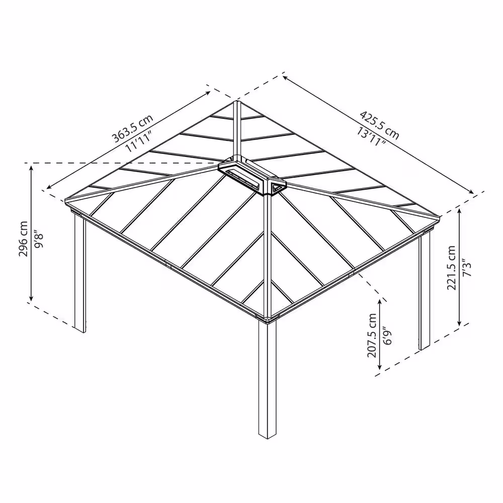 Add new quality to your garden or backyard and turn it into the heart of your home’s lounging space, a private getaway.The Dallas garden living space offers a sense of privacy and provides a shaded area to be utilized year-round. It’s ideal for your family get together, hosting a BBQ grill bash or relaxing in your outdoor leisure spa as well as for enjoying the fresh air and view of your garden.This highly sturdy and durable gazebo is built to last with its combination of rust resistant anthracite powder-coated aluminum frame & virtually unbreakable polycarbonate roof panels, which protect from the sun’s harmful impact for many years of enjoyment. Enjoy outdoor quality living at its best!