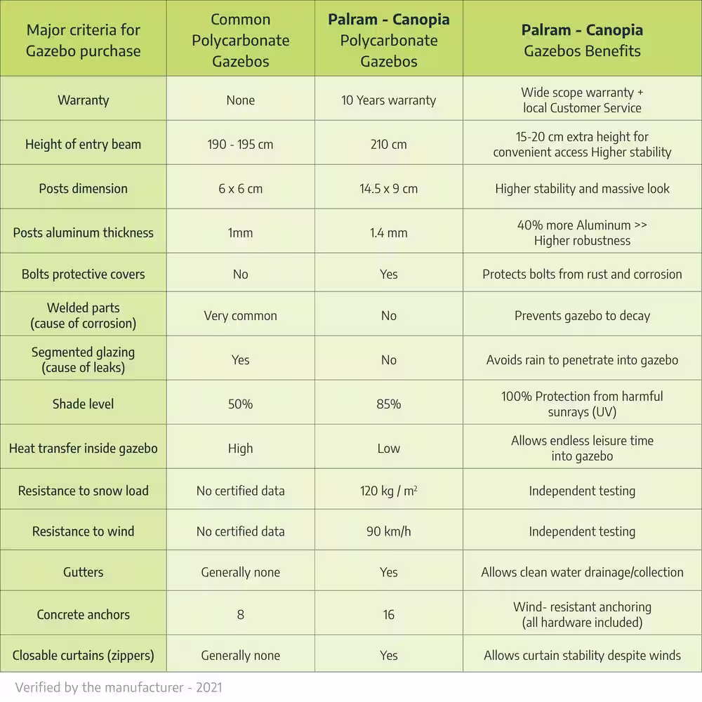 • Robust, rust-resistant powder-coated frame made massive aluminum structure with ultra-resilient roofing system