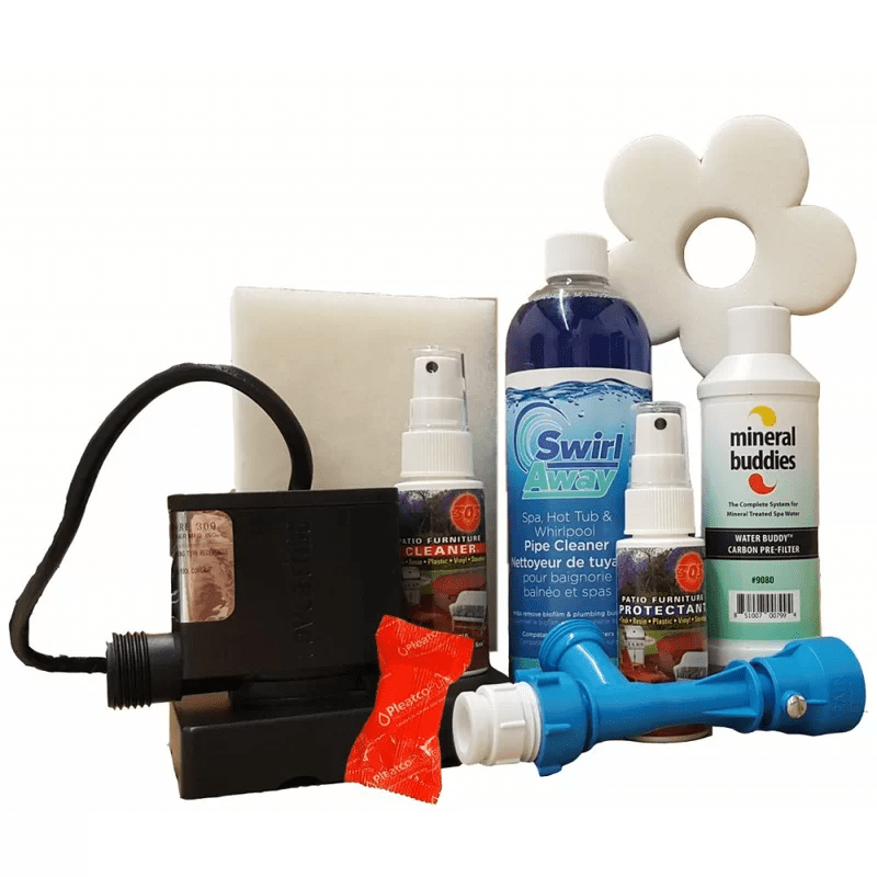 This handy deluxe kit includes all the necessities you need to drain and clean your hot tub.