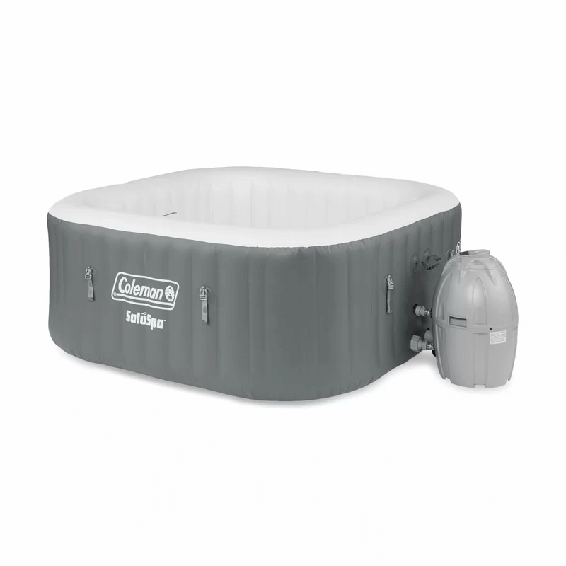 The spa is an inflatable hot tub that seats 4 people and is completely portable so you can take it with you on your vacations or relax at home. It has massage jets and a cushioned floor, making it easy for you to unwind.