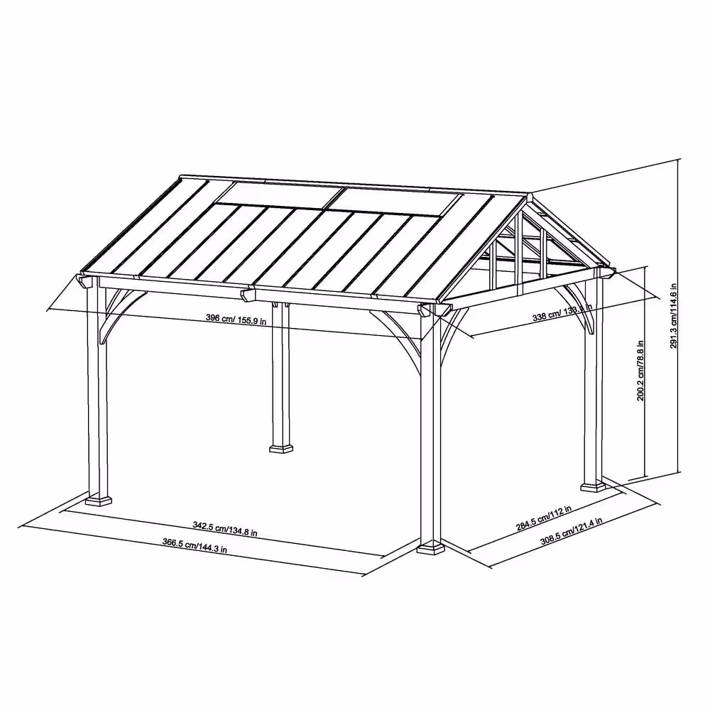 - Product specification: W 144.3 in. x D 121.4 in. x H 114.69 in. post to post: 144.29 in. W x 121.46 in. D x 114.69 in. H