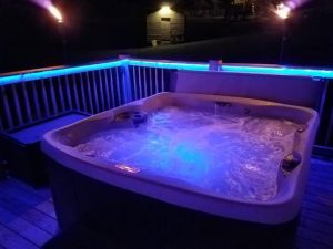 - Included: Thermal Locking Cover, Ozonator, Multi-Color Underwater LED Light, Waterfall Feature, 4 Cupholders, Filter