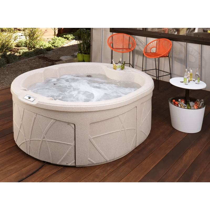 The Rock Solid Luna 4-Person 13-Jet Plug and Play Spa plug into any standard outlet. There is no need for custom wiring or installation. Simply fill it with a garden hose, plug it in and enjoy. Has a unique bench seat configuration on one side. energy efficient, so there is no need to turn the temperature down while not in use. Full foam insulation and a locking thermal cover will keep the heat in and the electric bill low, so you can enjoy your new spa for years to come, exceed the stringent California Energy Commission mandates for hot tub energy consumption.