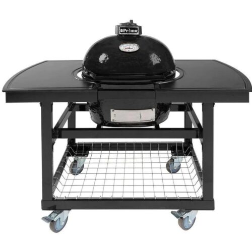 Primo revolutionized the world of kamado grills with their unique oval shape, and now they are bringing the revolution to gas grills. While most gas grills cook food by radiating high heat, drawing moisture out of food, the ceramic body of the Primo Oval G 420 functions as an insulator to retain more heat and natural moisture in your food. This freestanding gas grill is made in the USA and constructed with premium grade Primo SuperCeramics and coated with a protective, lead-free, and scratch-resistant porcelain glaze. The Primo Oval G420 efficiently retains and evenly distributes heat across the 420 square inches of cooking surface, perfect for maintaining a consistent temperature. Four 304 grade stainless steel tube burners are rated for 21,000 BTUs. Use the low temp burners to smoke meat at temperatures as low as 220 degrees Fahrenheit, or turn up the high temp burners to heat to more than 600 degrees Fahrenheit for searing and grilling. The flavor grids keep flare-ups to a minimum and are made from 304 grade stainless steel for increased durability. Electric ignition lights the burners quickly and safely. The smoker box allows you to infuse food with true wood-fired flavor, whether you are smoking or grilling. The full-size drip tray helps make cleaning a breeze. The fully assembled grill cart features brushed aluminum handles with a powder-coated steel exterior and locking casters. Two drawers provide valuable storage space while the fold-down stainless steel side shelves allow you to easily plate food as it comes off the grill. Unit ships as propane ready with orifices for natural gas conversion included. Conversion must be done by a licensed professional.
