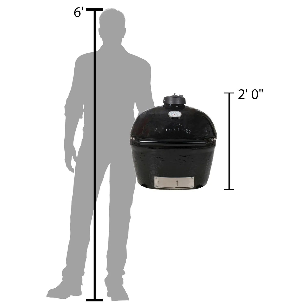 Choose Primo and experience the best in kamado style charcoal cooking. The Primo Oval Junior Smoker Charcoal Grill is a medium to large size grill with all the benefits of the original, uniquely shaped Oval XL, but for those who do not need as much cooking area. The distinct shape of the Oval Junior allows you to cook using direct or indirect heat, expanding your grilling options unlike any other kamado-style grill. This grill features easy to clean and reversible porcelain-coated cooking grates, as well as one of the highest sitting lids on the market which is great for cooking whole chickens. This kamado style grill is made in the USA, unlike its competition, constructed with premium grade Primo SuperCeramics, and coated with a protective, lead-free, and scratch-resistant porcelain glaze. The patented Primo Oval Junior efficiently retains and evenly distributes heat across the 210 square inches of cooking surface, perfect for maintaining a consistent temperature. Smoke meat at temperatures as low as 180 degrees Fahrenheit, or turn up the heat to more than 500 degrees Fahrenheit for searing and grilling. Use the cast iron chimney cap, stainless steel lower vent door, and easy to read thermometer for monitoring and keeping a precise temperature. The easy lift-and-lock hinge system keeps the lid raised in place, and the soft-close felt gasket protects the ceramic while opening and closing the lid using the cool touch handle. Heat-safe ceramic feet are available to stabilize your Primo and are needed when the grill sits on a combustible surface (sold separately). The variety of accessories available, along with the unique oval shape, allows flexibility in cooking a never ending list of delicious meals. Choosing a Primo kamado style grill is a decision you will never regret.