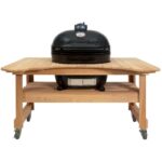 Choose Primo and experience the best in kamado style charcoal cooking. The Primo Oval XL Charcoal Smoker Grill is an extra large sized grill and one of the biggest ceramic cookers on the market. The distinct shape of the Oval XL allows you to cook using direct or indirect heat, expanding your grilling options unlike any other kamado-style grill. This grill features easy to clean and reversible stainless steel cooking grates, as well as one of the highest sitting lids which is great for cooking whole chickens or turkeys. This kamado style grill is made in the USA, unlike its competition, and constructed with premium grade Primo SuperCeramics and coated with a protective, lead-free, and scratch-resistant porcelain glaze. The patented Primo Oval XL efficiently retains and evenly distributes heat across the 400 square inches of cooking surface, perfect for maintaining a consistent temperature. Smoke meat at temperatures as low as 180 degrees Fahrenheit, or turn up the heat to more than 500 degrees Fahrenheit for searing and grilling. Use the cast iron chimney cap, stainless steel lower vent door, and easy to read thermometer for monitoring and keeping a precise temperature. The easy lift-and-lock hinge system keeps the lid raised in place, and the soft-close felt gasket protects the ceramic while opening and closing the lid using the cool touch handle. The included ceramic feet safely elevate your grill away from the combustible surface of the table, which is constructed by hand from durable cypress wood. The curved design of the cypress table makes it easy for you to get in close to the grill. At 61 inches wide, the table provides plenty of workspace for prepping food and room to store ingredients and grilling tools, while tastefully showcasing your Primo grill. Four revolving and lockable caster wheels roll smoothly on any patio surface and lock in place when you are ready to grill. The variety of accessories available, along with the unique oval shape, allows flexibility in cooking a never ending list of delicious meals. Choosing a Primo kamado style grill is a decision you will never regret.