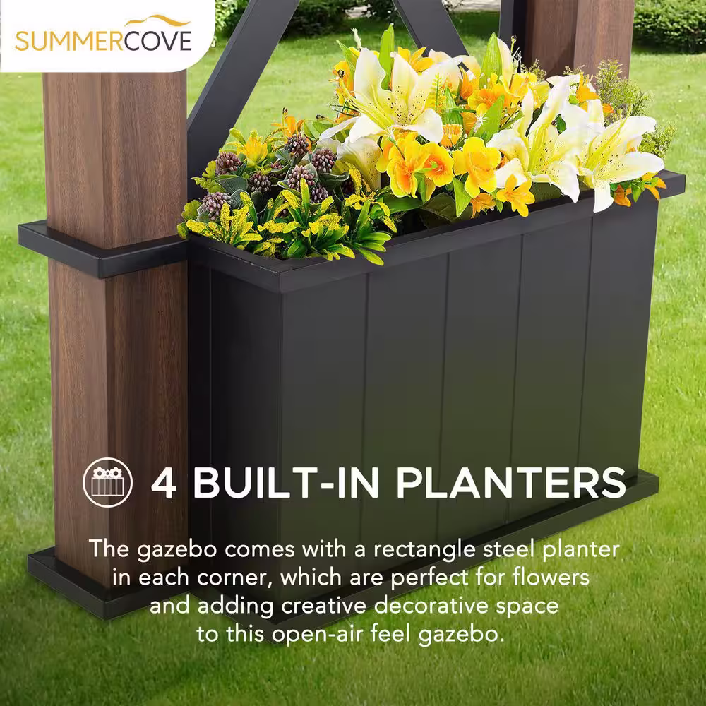 - Customizable & Stylish Design: This outdoor gazebo comes with 4 built-in aluminum rectangle shaped planters for growing flowers, while making the structure of the gazebo steadier and sturdier.
