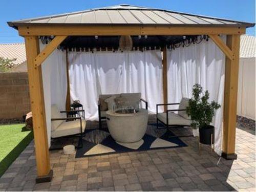 • Stability, Protection & Privacy: The durable brown steel and polycarbonate hip roof and premium cedar wood frame combine to provide shade from the heat and keep the water out. Dual rail system included to simultaneously suspend mosquito netting and privacy curtains (mosquito netting and curtains sold separately).