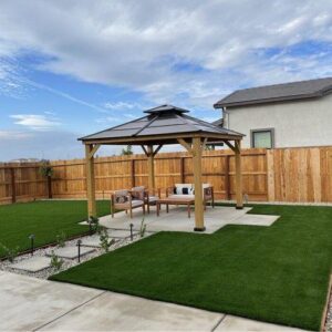 • Sturdy & Stable Construction: Four 5.5 x 5.5 in. extra-strong sturdy wood posts with ground stakes secure the gazebo to the ground to withstand strong winds, and inclement weather, making this gazebo extremely durable and stable for years to come. The attractive finish lets you create an attractive, strong, outdoor haven that will stand the test of time.