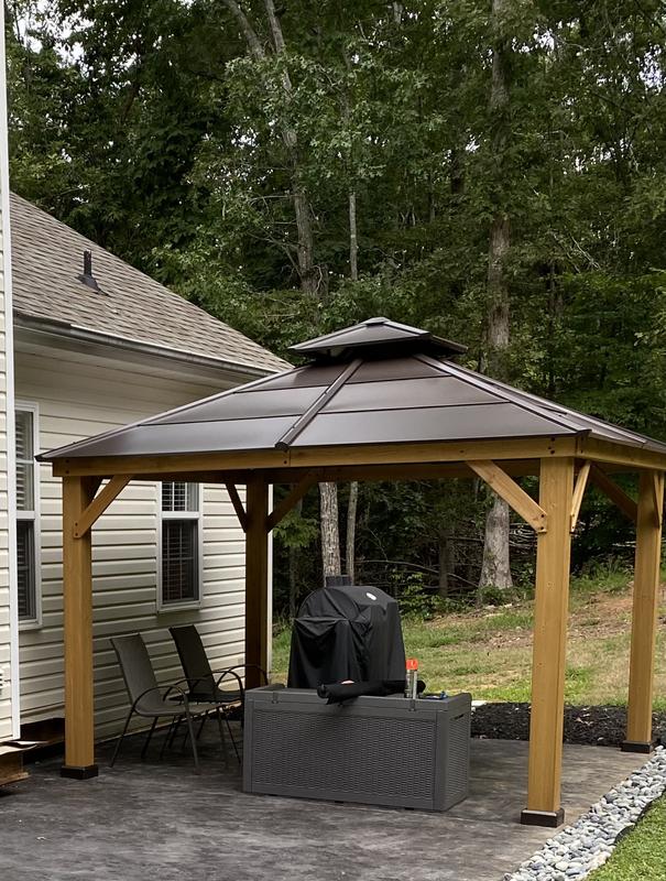 Home Gazebos Sunjoy – Myla 11 ft. x 13 ft. Cedar Framed Gazebo with Brown Steel 2-Tier Hip Roof Hardtop