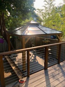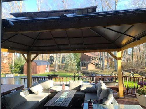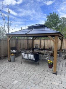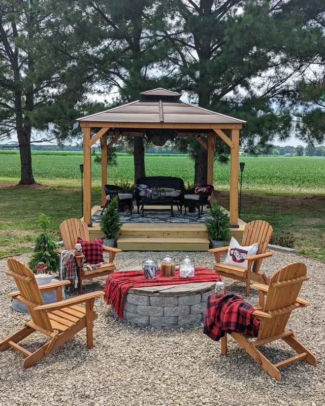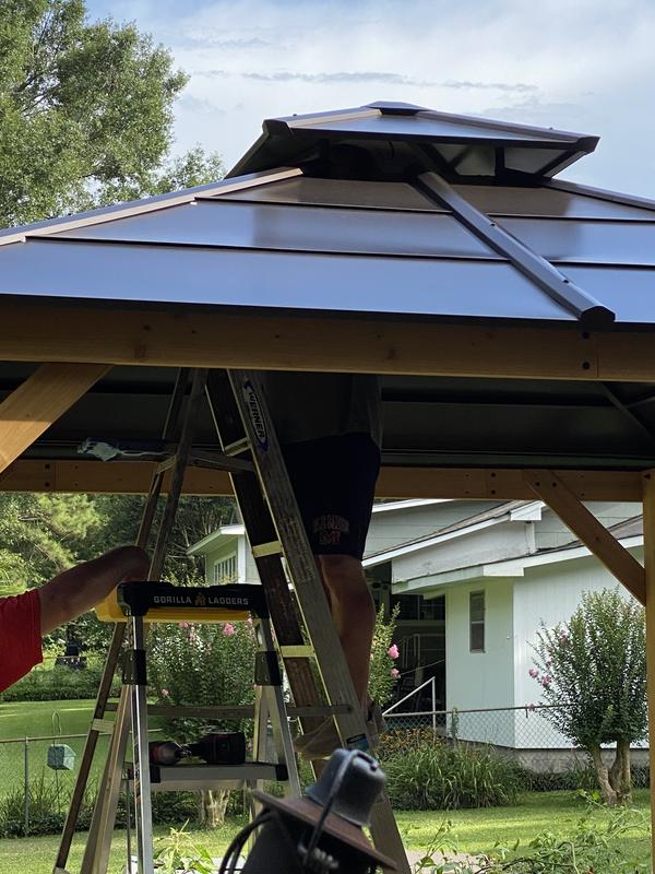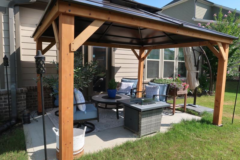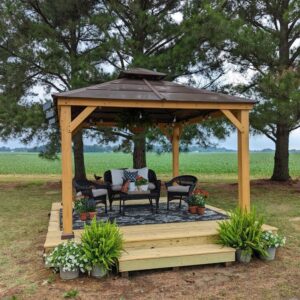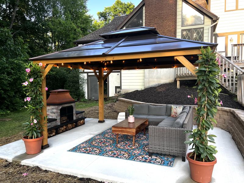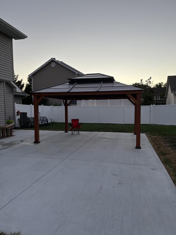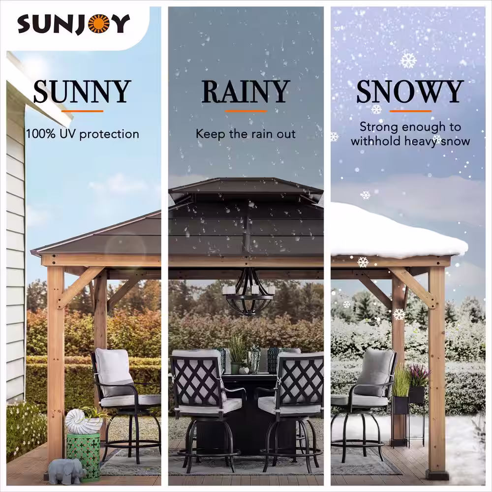 Expand your living space by bringing the indoors outside and create an end-of-the-day oasis that’s an ideal spot for entertaining family and friends. This 11 ft. x 13 ft. gazebo from the world’s leading ready-to-assemble outdoor structure maker, Sunjoy, creates the perfect outdoor setting for a gathering any time of the year. Spend all four seasons enjoying your covered area outdoors under a cedar wood frame gazebo with a sturdy powder-coated steel roof top that will stand the test of time. The 2-tier roof provides just the right amount of airflow while simultaneously keeping occasional inclement weather at bay. Set the mood by suspending a chandelier from the incorporated ceiling hook for functional light and a touch of elegant design. With straight-forward, easy-to-follow assembly instructions you’ll soon be relaxing in your favorite new outdoor living space, and for years to come.