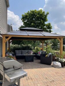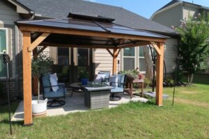 Sunjoy - Bella 12.5 ft. x 12.5 ft. Cedar Framed Gazebo with Black Steel 2-Tier Hardtop Roof $2,999.00 Original price was: $2,999.00.$2,249.00Current price is: $2,249.00.
