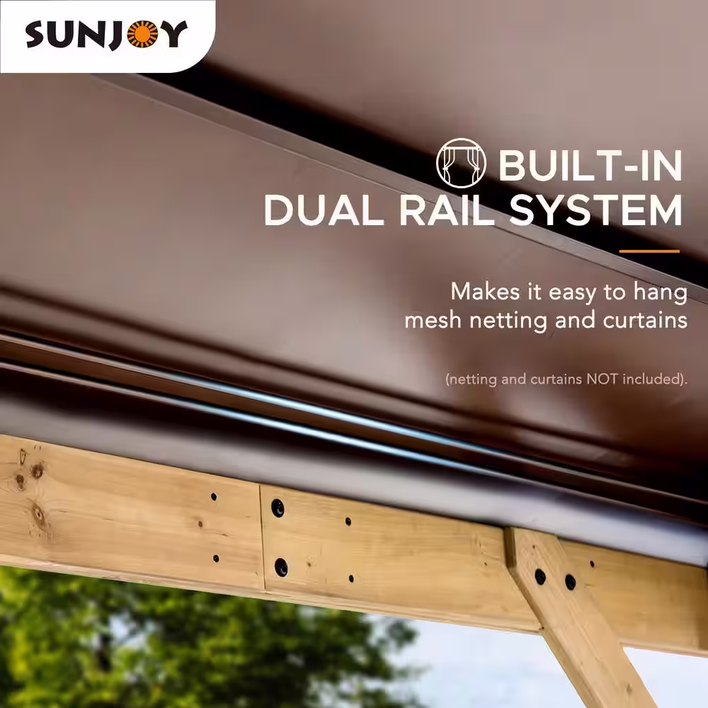 • Stability, Protection & Privacy: Featuring a durable brown, 2-tier steel roof and premium cedar wood frame, this gazebo not only provides shade and comfort from the heat, but also keeps the water out. Built-in dual rail system allows you to suspend mosquito netting and privacy curtains (mosquito netting and curtains sold separately).