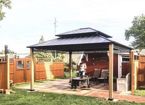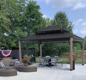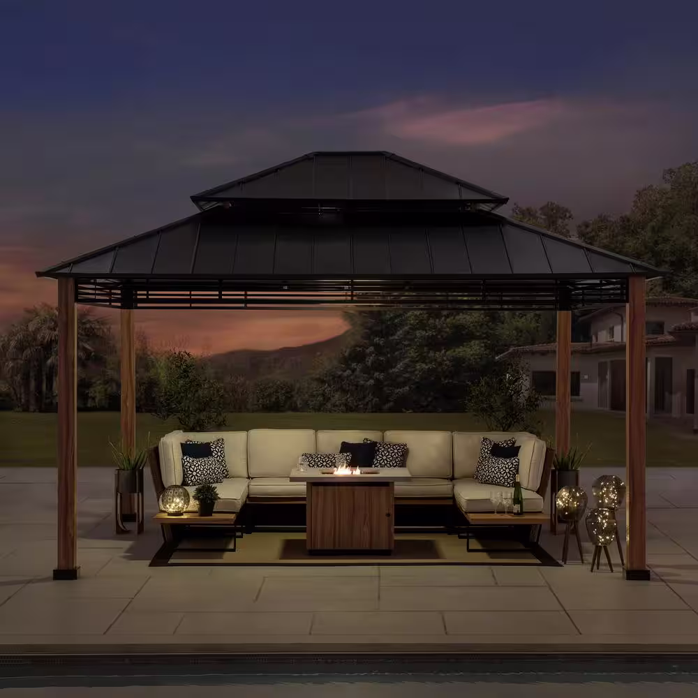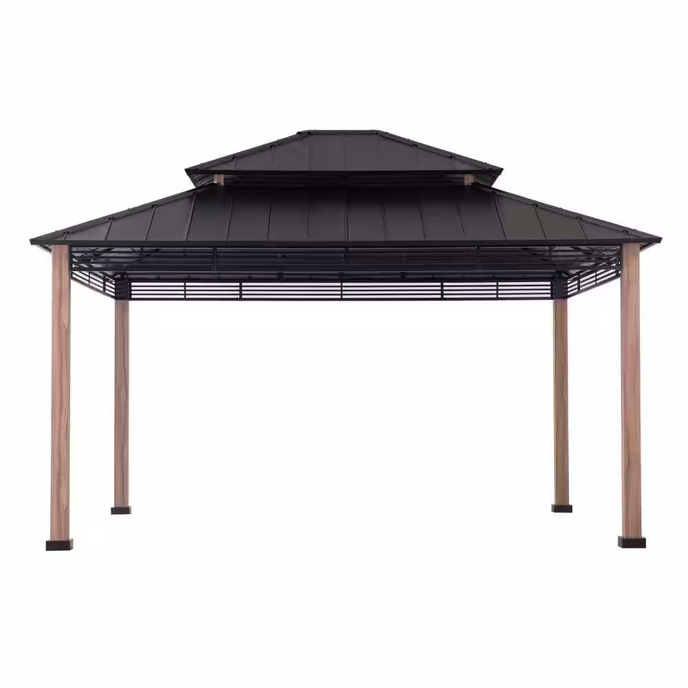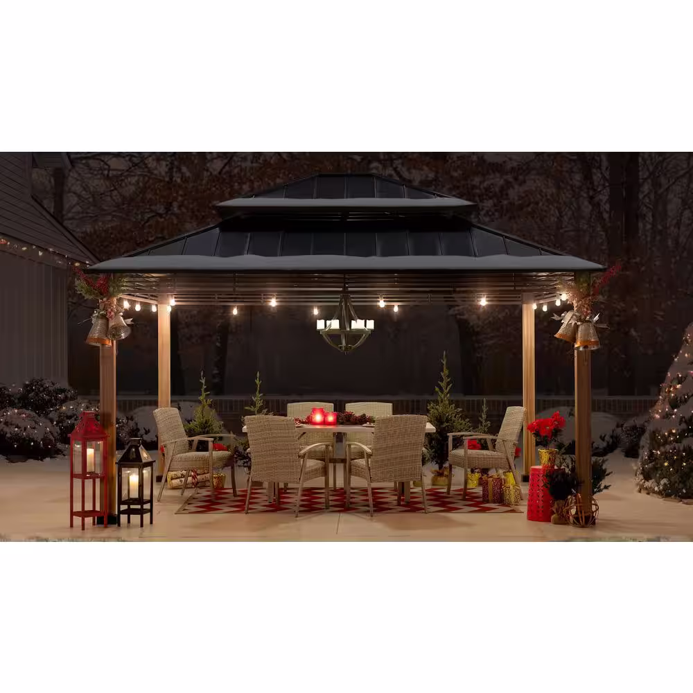 Sunjoy - Myla 13 ft. x 15 ft. Cedar Gazebo with Brown Steel 2-Tier Hip Roof Hardtop $2,299.00 Original price was: $2,299.00.$1,959.00Current price is: $1,959.00.