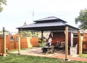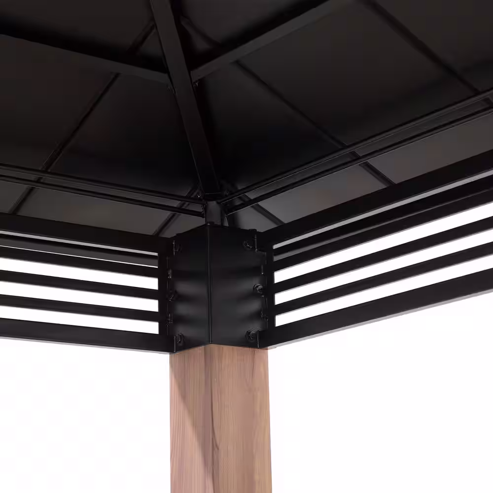 Sunjoy – Bella 12.5 ft. x 12.5 ft. Cedar Framed Gazebo with Black Steel 2-Tier Hardtop Roof