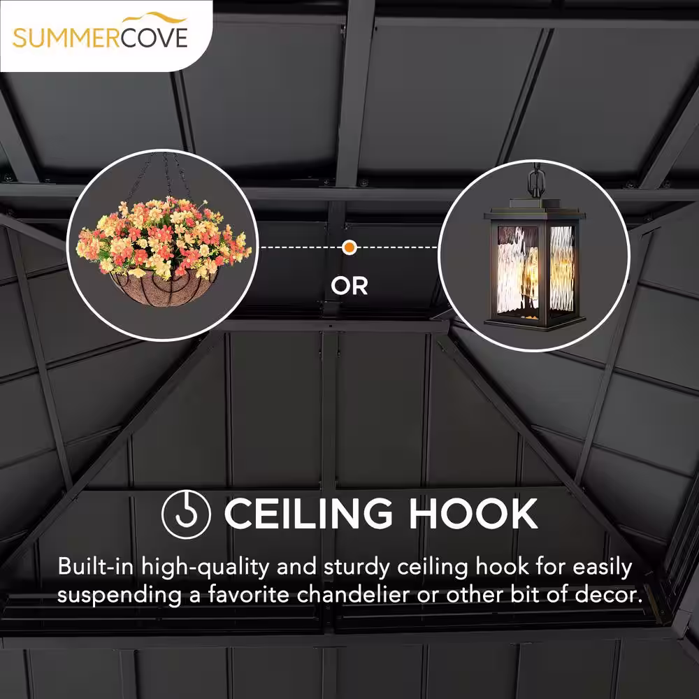 • Light Up Your Outdoor Patio: Ceiling hook is provided for suspending lighting (not included) to illuminate your evening gatherings.