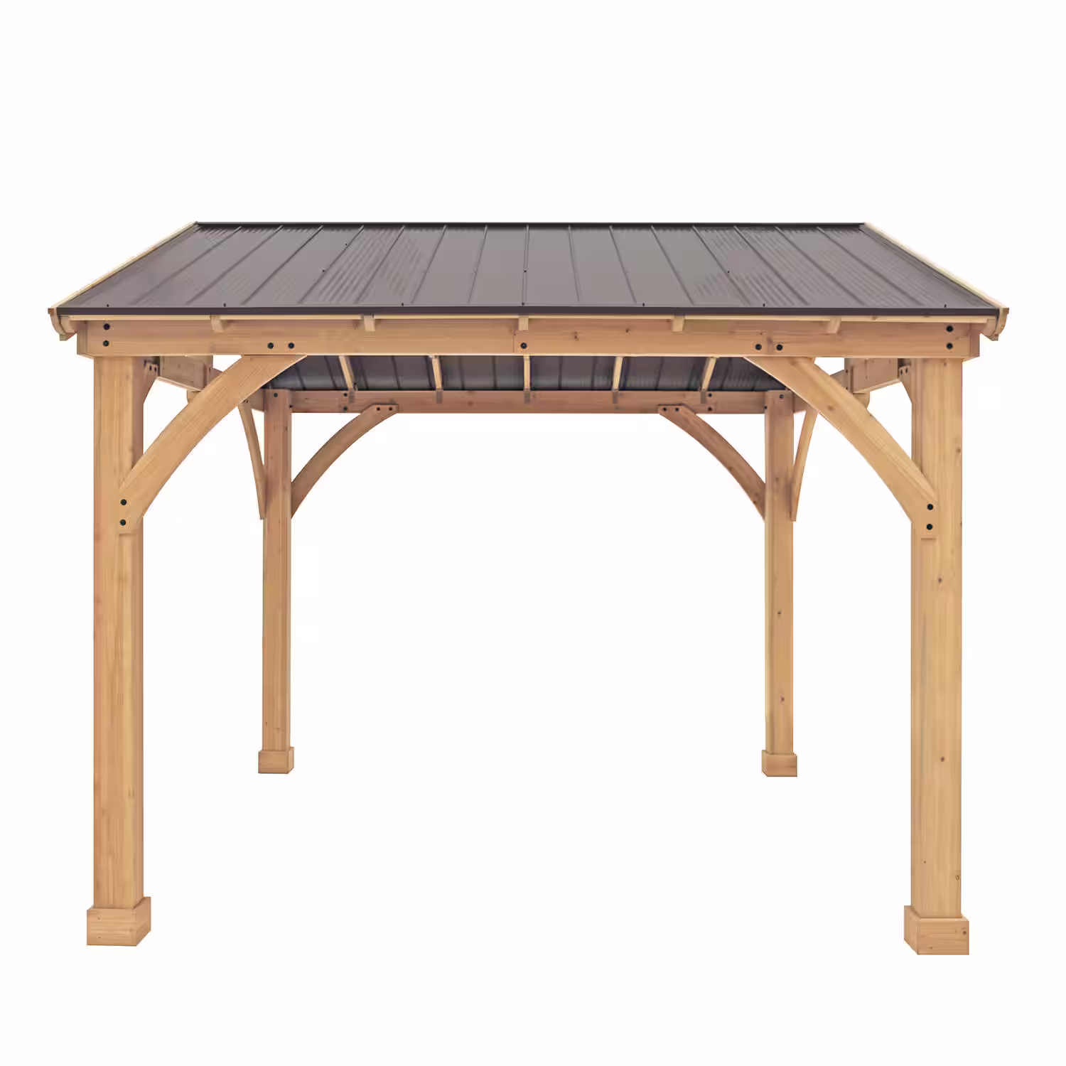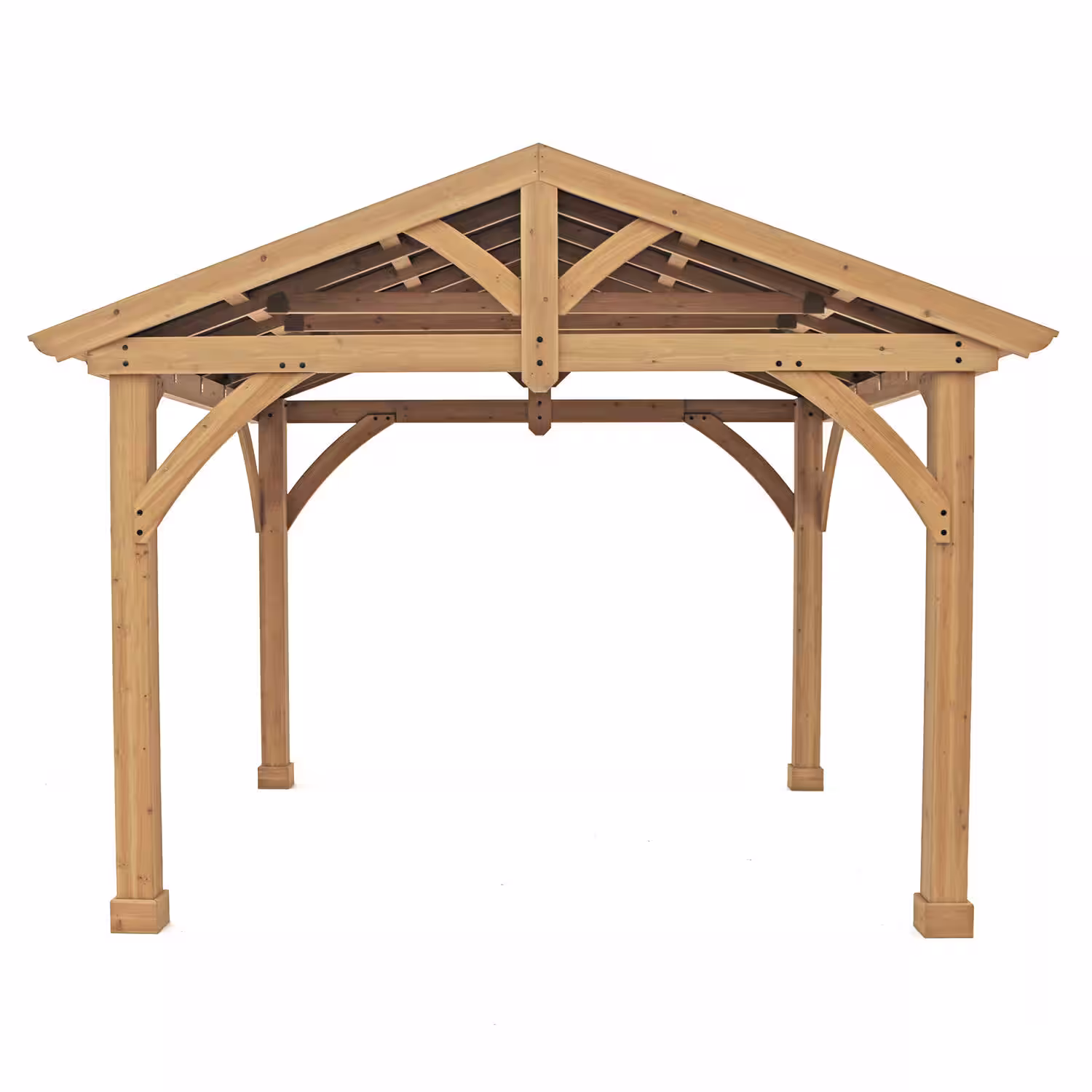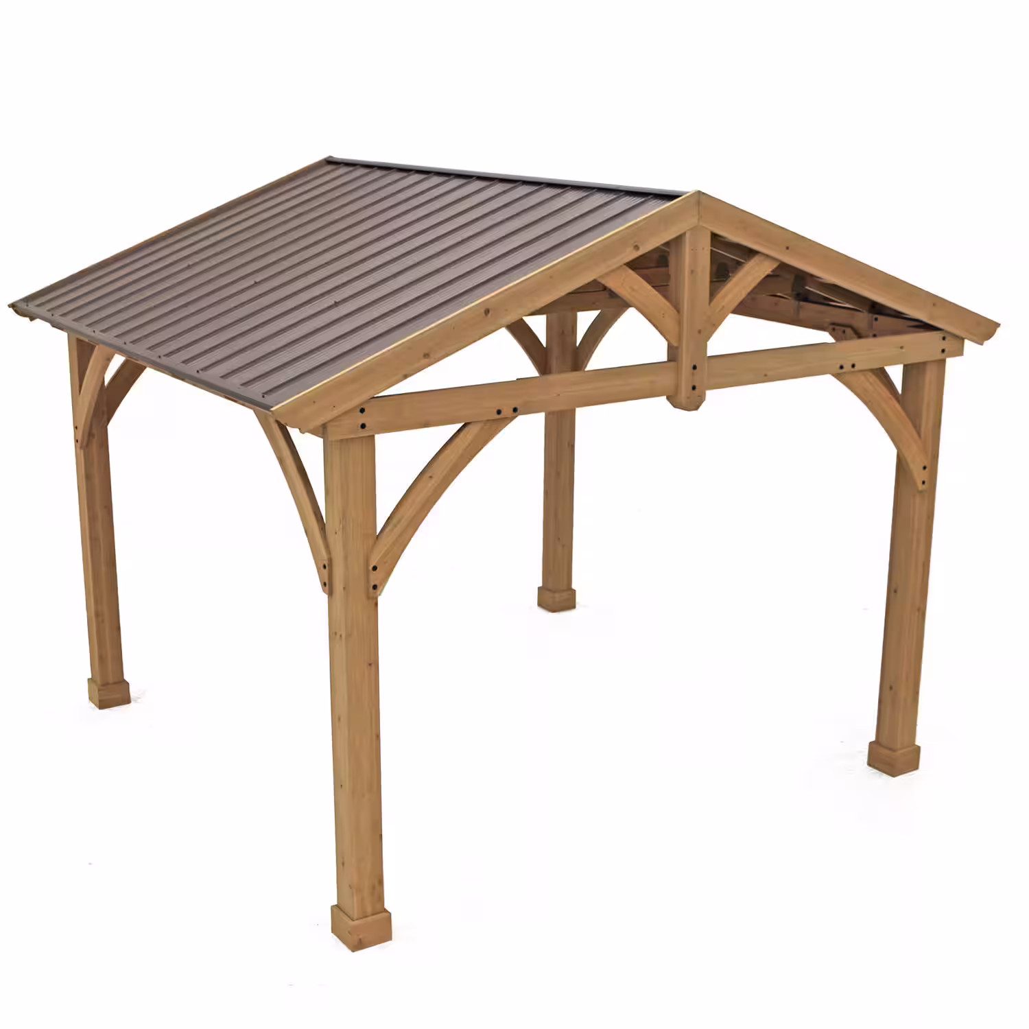 Sunjoy – Myla 11 ft. x 13 ft. Cedar Framed Gazebo with Brown Steel 2-Tier Hip Roof Hardtop